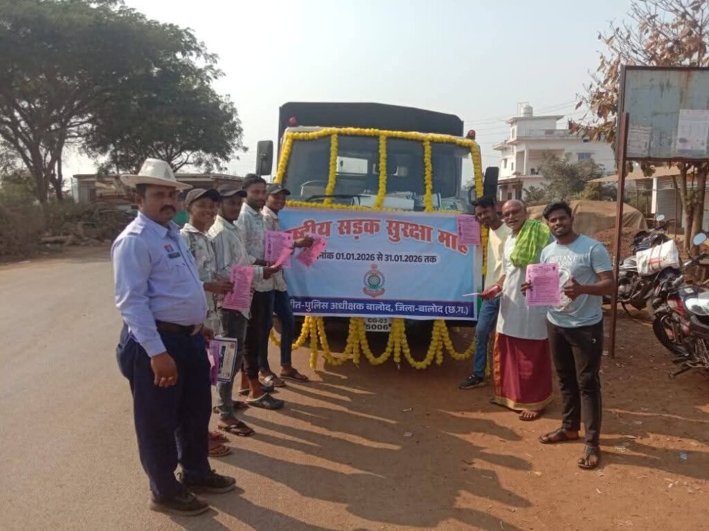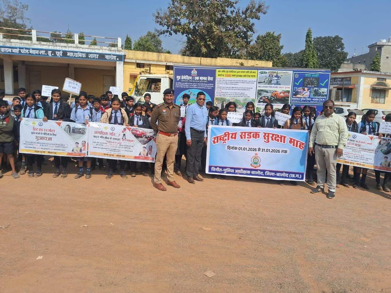 पुलिस अधीक्षक बालोद श्रीमान् योगेश कुमार पटेल के निर्देशन पर, अतिरिक्त पुलिस अधीक्षक श्रीमती मोनिका ठाकुर के मार्गदर्शन में, अनुविभागीय अधिकारी (पुलिस) बालोद देवांश सिंह राठौर एवं यातायात प्रभारी निरीक्षक रविशंकर पाण्डेय के नेतृत्व में जिले में "राष्ट्रीय सड़क सुरक्षा माह" (दिनांक 01.01.2026 से 31.01.2026 तक) यातायात सड़क सुरक्षा माह का आयोजन किया जा रहा है।
