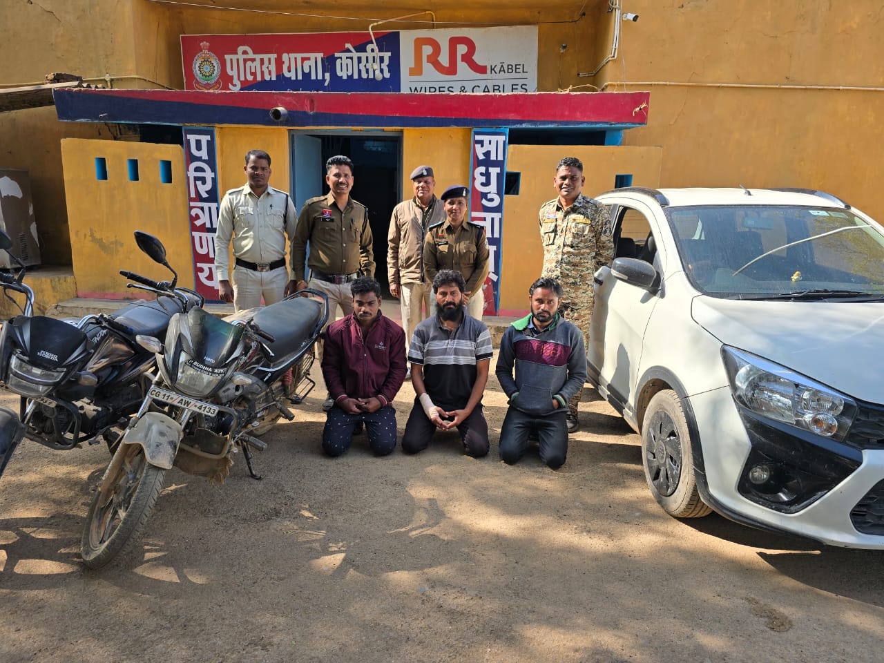 गिरफ्तार आरोपी –01.चुडामणी साहू पिता स्व सागर लाल साहू उम्र 48 वर्ष 02.नंदकिशोर ऊर्फ नंदू साहू पिता माधव प्रसाद साहू उम्र 28 वर्ष 03.दुजराम साहू पिता शिवनारायण साहू उम्र 30 वर्ष सभी ग्राम हसौद थाना हसौद जिला सक्ती छ0ग0
