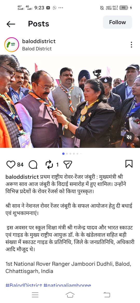 लेकिन इसी समापन समारोह के दिन बालोद जिला प्रशासन की एक गंभीर और शर्मनाक लापरवाही सामने आई। जिला प्रशासन द्वारा संचालित आधिकारिक सोशल मीडिया Facebook , Instagram पेज पर उप मुख्यमंत्री श्री अरुण साव को ‘मुख्यमंत्री’ बताकर पोस्ट किया गया, जो न केवल संवैधानिक पदों की जानकारी में भारी चूक है, बल्कि प्रशासनिक गैर-जिम्मेदारी को भी उजागर करता है।