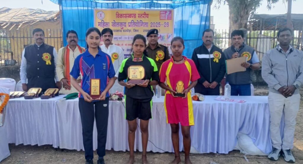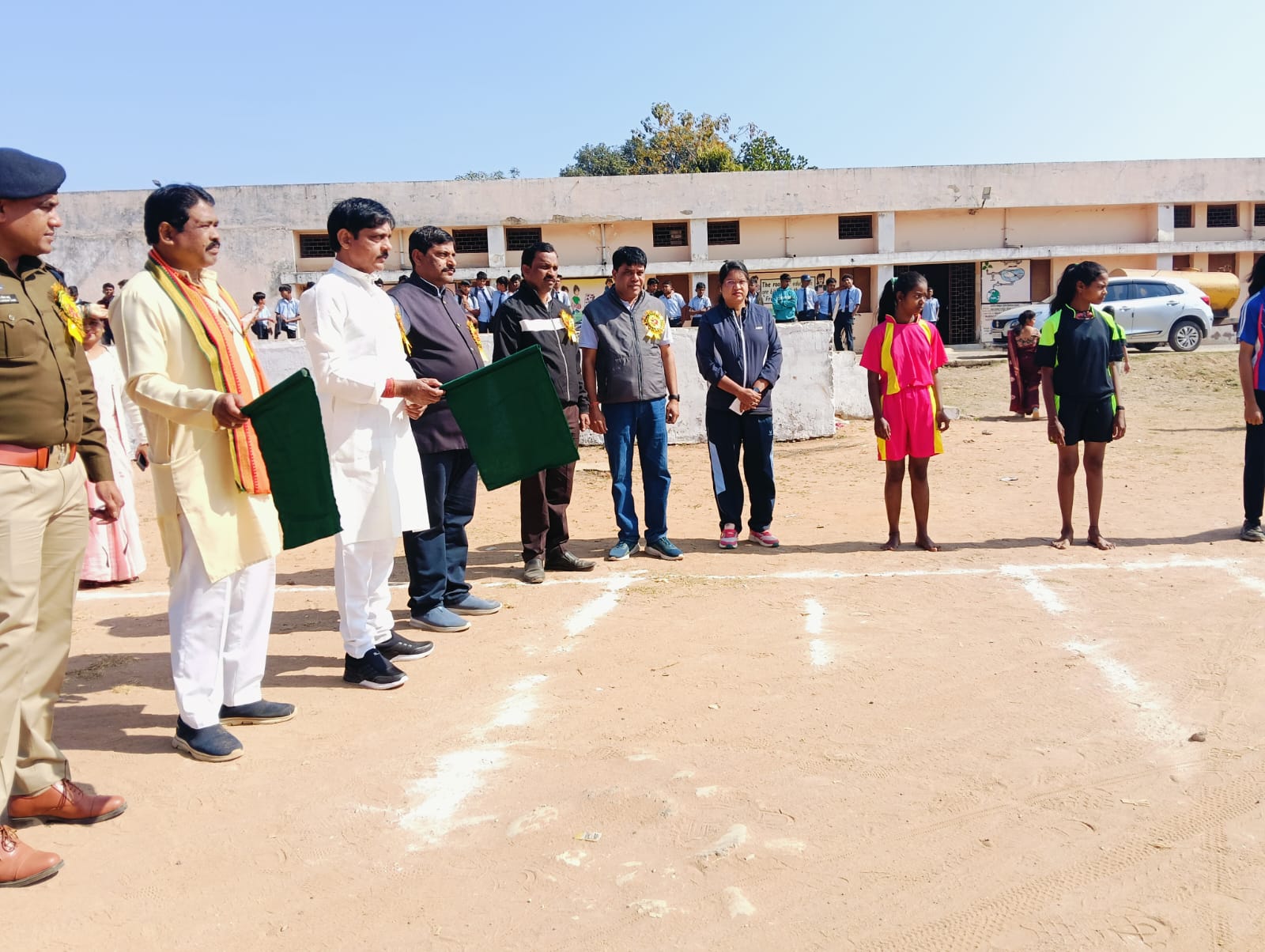घरघोड़ा : युवा खेल कल्याण विभाग द्वारा विकास खंड घरघोड़ा मुख्यालय मे खेल प्रतियोगिता का आयोजन माध्यमिक शाला खेल मैदान मे आयोजित किया गया ; जिसमें विद्यालयीन छात्राओं ने उत्साहपूर्वक अपनी सहभागिता निभाते हुए अपने खेल प्रतिभा का प्रदर्शन किया |खेल प्रतियोगिता मे नगरीय एवं ग्रामीण क्षेत्र के छात्राओं ने भाग लिया |प्रतियोगिता का शुभारम्भ छत्तीसगढ़ महतारी भारत माता एवं माँ शारदे की प्रतिमा के समक्ष दीप प्रज्ज्वलन एवं पुष्प अर्पित कर एवं कार्यक्रम मे उपस्थित जनपद पंचायत अध्यक्ष सहनू राम पैंकरा एवं नगर पंचायत अध्यक्ष सुरेंद्र चौधरी द्वारा एक सौ मीटर की दौड़ को ध्वज दिखा कर किया गया | इस अवसर पर पुलिस आरक्षी केंद्र प्रभारी घरघोड़ा के कुमार गौरव साहू ने उपस्थित होकर अपनी सहभागिता निभायी |एक दिवसीय प्रतियोगिता मे एथलेटिक्स, खो खो, रस्साकसी, बैडमिंटन, वालीवाल,बास्केटबॉल, हॉकी, कुश्ती, फुटवाल खेल शामिल थे |कार्यक्रम मे विकास खंड शिक्षा अधिकारी संतोष कुमार सिंह ने प्रतिभागी छात्राओं का उत्साहवर्धन करते हुए कार्यक्रम की जानकारी दी एवं प्रतियोगिता का संयोजन किया|