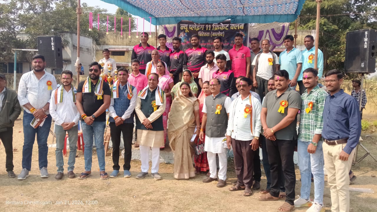 न्यू प्लेयिंग इलेवन क्रिकेट क्लब बिरेतरा के तत्वावधान में आयोजित आज से 6 दिवसीय क्रिकेट प्रतियोगिता का भव्य शुभारंभ उत्साहपूर्ण वातावरण में संपन्न हुआ। उद्घाटन समारोह में जिला पंचायत उपाध्यक्ष तोमन साहू मुख्य अतिथि के रूप में उपस्थित रहे।