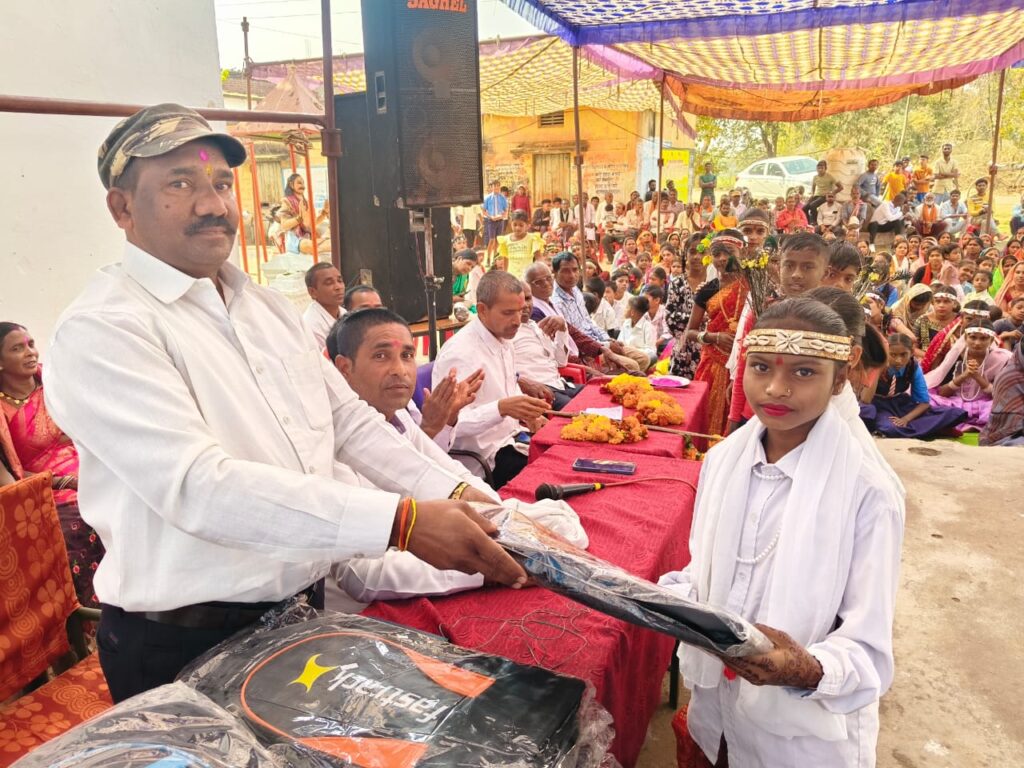 इस अवसर पर समाजसेवी किशनलाल साहू ने प्रेरणादायक पहल करते हुए प्राथमिक शाला के 40 विद्यार्थियों को स्कूल बैग भेंट किए। अपने उद्बोधन में उन्होंने भारतीय संविधान के महत्व, अधिकारों एवं कर्तव्यों पर विस्तार से प्रकाश डालते हुए बच्चों से संविधान के आदर्शों को अपने जीवन में अपनाने का आह्वान किया।