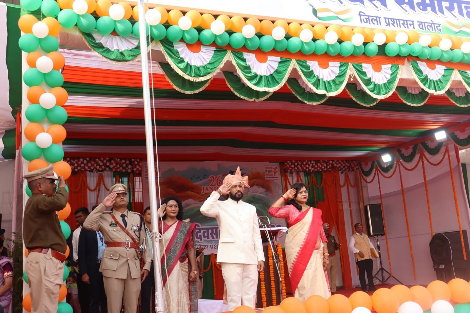 राष्ट्रीय पर्व 77वें गणतंत्र दिवस के अवसर पर जिला मुख्यालय बालोद में हर्ष, उल्लास और देशभक्ति के वातावरण में भव्य एवं गरिमामय समारोह का आयोजन किया गया। मुख्य कार्यक्रम सरयू प्रसाद अग्रवाल स्टेडियम में संपन्न हुआ, जहाँ प्रदेश के कौशल विकास, तकनीकी शिक्षा एवं रोजगार तथा अनुसूचित जाति विकास मंत्री श्री गुरु खुशवंत साहेब मुख्य अतिथि के रूप में उपस्थित रहे।