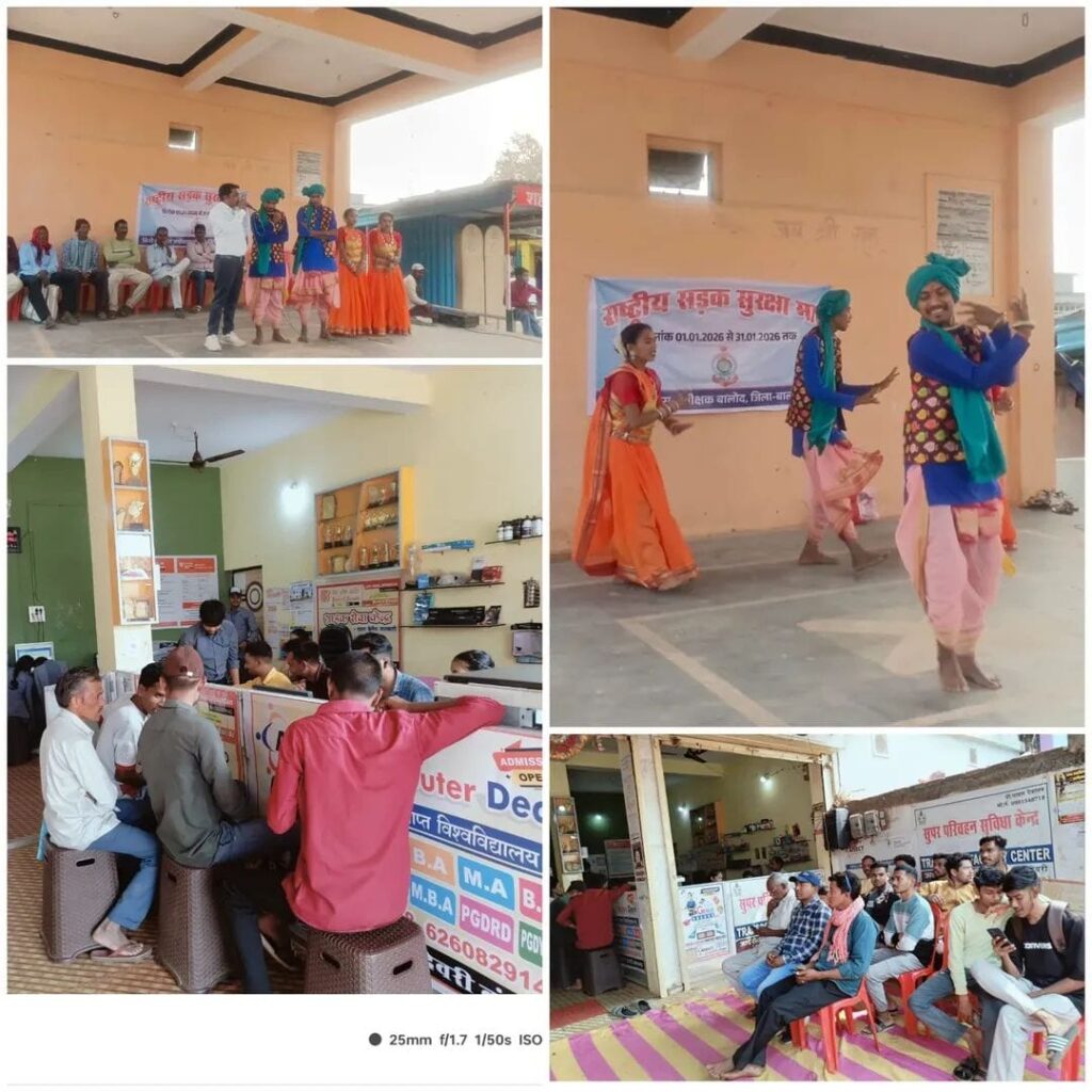 इसी क्रम में 28 जनवरी 2026 को बालोद के साप्ताहिक बाजार में “बालोद के रंग” संस्था के कलाकारों द्वारा सड़क सुरक्षा विषय पर प्रभावशाली नुक्कड़ नाटक का मंचन किया गया। यह कार्यक्रम पुलिस विभाग एवं लोक निर्माण विभाग बालोद के संयुक्त प्रयास से आयोजित हुआ।