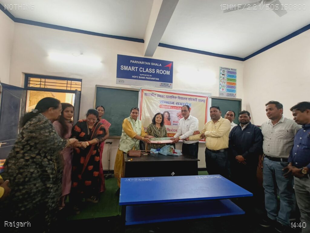 रायगढ़-आज दिनांक 11.02.2026 को शासकीय रविशंकर प्राथमिक शाला, माध्यमिक शाला एवं शासकीय उच्चतर माध्यमिक विद्यालय चांदमारी रायगढ़ के संयुक्त तत्वावधान में प्राचार्य श्रीमती दीप्ति अग्रवाल की प्रतिनियुक्ति राज्य शासन के आदेशानुसार राज्य शैक्षिक अनुसंधान एवं प्रशिक्षण परिषद रायपुर में सहायक प्राध्यापक के पद पर हो जाने के फलस्वरूप सम्मान समारोह आयोजित किया गया।