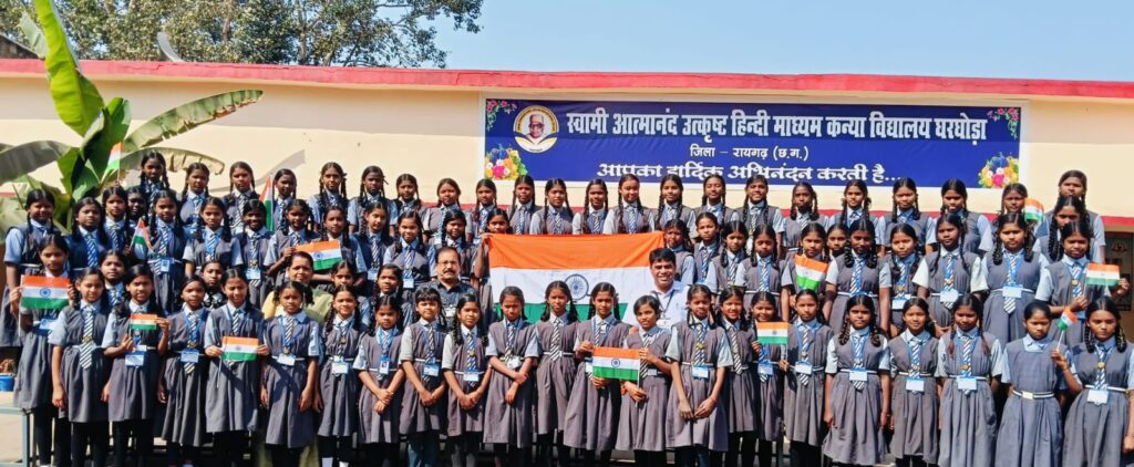घरघोड़ा : छात्राओं के शैक्षणिक एवं बौद्धिक विकास हेतु तत्पर शास. कन्या पूर्व माध्य. शाला घरघोड़ा में छात्राओं एवं शिक्षकों ने उत्साह एवं सम्मान से छः छंद युक्त वन्दे मातरम का सामूहिक गायन करते हुए अपनी अनुशासन एवं राष्ट्रीय एकता का परिचय दिया | इस अवसर पर छात्राओं ने शिक्षकों के साथ इस गौरव पल की शुरुवात कर हाथों मे तिरंगा लेकर राष्ट्रीयता का परिचय देते हुए भारत माता की जय के नारे लगाए |विद्यालय शासन के समस्त स्कूली योजनाओं के बेहतरीन क्रियान्वयन मे अपनी सहभागिता निभाती रही है |बंकिम चंद्र चटर्जी की आनंदमठ से वन्देमातरम को छात्राओं ने आरोह अवरोह क्रम मे सम्मान पूर्वक 03.10 मिनट मे गाया | विद्यालय के प्रधानपाठक अखिलेश मिश्रा एवं शिक्षिका निवेदता सिंह द्वारा गायन के प्रारम्भ मे ऐतिहासिक तथ्यों से छात्राओं को अवगत कराया गया | 1875 मे लिखी गयी रचना भारतीय जनों मे उत्साह संचार का माध्यम रही है |शिक्षक विजय पंडा ने छात्राओं को वन्दे मातरम की महत्ता अर्थ को बतलाते हुए कार्यक्रम का संयोजन किया एवं कहा की पूर्ण रूप के गायन से छात्राओं को अपनी इतिहास एवं संस्कृति पर गर्व होगा |