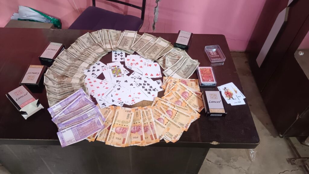 कोसीर – सारंगढ़ बिलाईगढ़ जिले मे अवैध गतिवधि जुआ सट्टा जैसे मामलो पर सारंगढ़ बिलाईगढ़ जिले की पुलिस एक्शन मोड़ पर है आपको बता दे दर्जन भर से अधिक आरोपी को कोसीर पुलिस ने गिरफ्तार किया हैँ जहाँ आपको बता दे आधीरात मे जुआ खेलते कई आरोपी को गिरफ्तार किया गया हैँ आपको बता दे थाना कोसीर क्षेत्र के ग्राम पासीद क्षेत्र टीप धरसाखार मे कुछ लोग पैसा का दाँव लगाकर 52 पत्ती खेल रहे हैँ जिसकी सुचना कोसीर पुलिस की मिली जहाँ छापामार कार्यवाही करने बताये लोकेशन पर पहुंची जहाँ लगभग एक दर्जन से अधिक लोग जुआ खेलते पुलिस ने धर दबोचा आपको बता दे लगभग 14 आरोपी गिरफ्तार किये गए हैँ साथ ही पुलिस ने 27 हजार रुपए भी बरामद किया गया है पुलिस ने आरोपी और नगदी पैसे के साथ 52 पत्ती ताश जप्त कर आरोपी को जेल भेजा हैँ