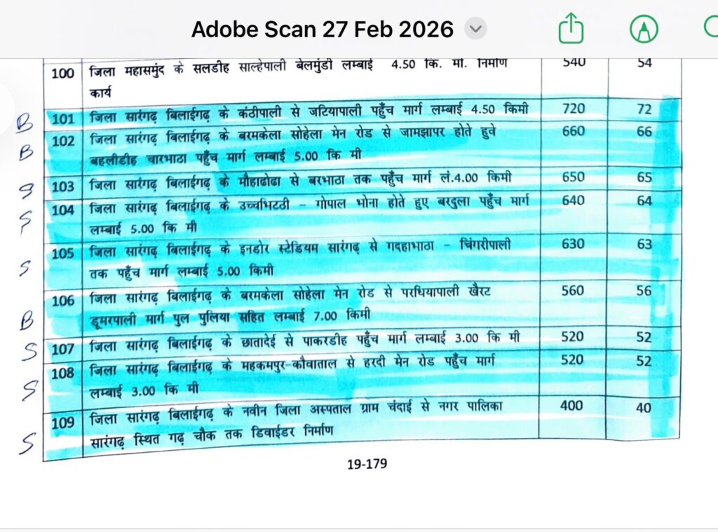 सारंगढ़-बिलाईगढ़- जिले की लंबे समय से जर्जर और बदहाल पड़ी सड़कों को आखिरकार बड़ी राहत मिली है। बजट वर्ष 2026-27 में जिले की कई महत्वपूर्ण सड़कों को शामिल करते हुए करोड़ों रुपए की स्वीकृति प्रदान की गई है। इस निर्णय से क्षेत्र के ग्रामीणों और आमजनों में खुशी की लहर है।