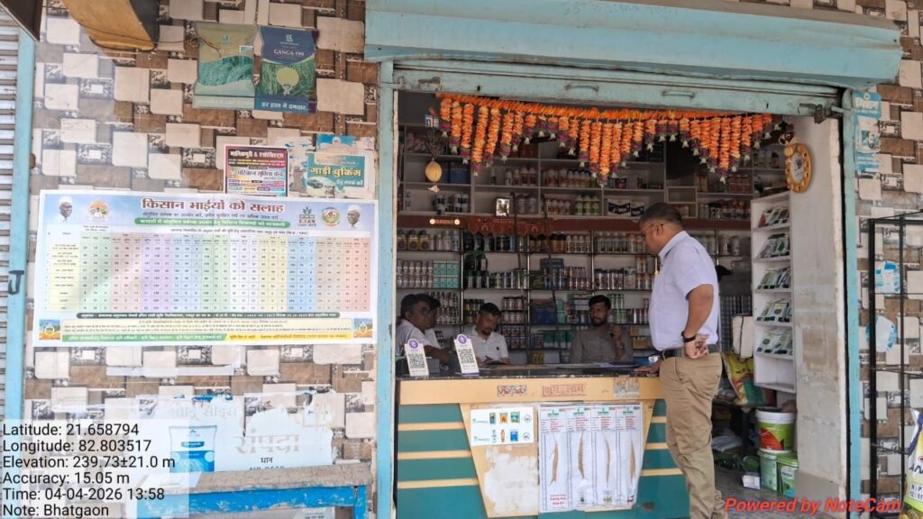 भटगांव स्थित विश्वनाथ साहू कृषि केन्द्र, पुष्पराज केशरवानी भटगावं, राहुल हार्डवेयर, भटगावं, प्रमोद हार्डवेयर तथा तेजस्वनी ट्रेडर्स कोदवा सरसीवां का निरीक्षण किया गया।विश्वनाथ साहू कृषि केन्द्र भटगांव के संस्थान का निरीक्षण उपरांत भौतिक सत्यापन में 190.845 टन यूरिया का अंतर पाये जाने के कारण विश्वनाथ साहू कृषि केन्द्र भटगांव का उर्वरक अनुज्ञप्ति निलंबित किया गया एवं मेसर्स प्रमोद हार्डवेयर संस्थान का निरीक्षण उपरांत भौतिक सत्यापन में 55.800 टन यूरिया का अंतर पाया गया। अनियमितता के कारण नोटिस दिया गया है। निरीक्षण दल में जयप्रकाश गुप्ता उर्वरक निरीक्षक, दीनानाथ साहू, ग्रामीण कृषि विस्तार अधिकारी एवं मयाशंकर जोल्हे बीटीएम शामिल थे।