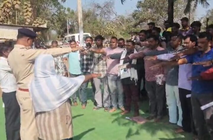 सड़क सुरक्षा माह के अंतर्गत जांजगीर शहर के ई-रिक्शा चालकों को दिलाई गई यातायात नियमों के पालन की शपथ