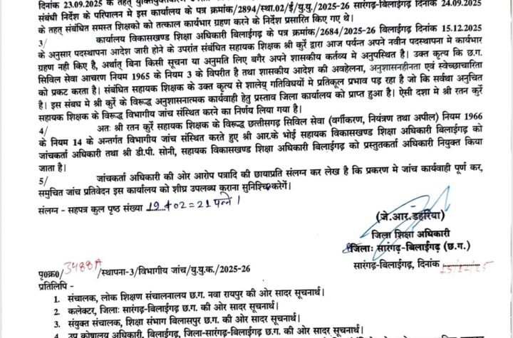 सारँगढ़ - सारंगढ़ छत्तीसगढ़ शासन स्कूल शिक्षा विभाग के अनुसार जिले में शिक्षको के युक्तियुक्तकरण अन्तर्गत रतन कुरें सहायक शिक्षक...