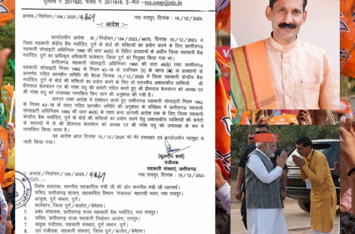 बलोद-CM विष्णुदेव साय ने जिला सहकारी बैंकों में लंबे समय बाद राजनीतिक नेतृत्व की वापसी कराई है। राज्य सरकार के...