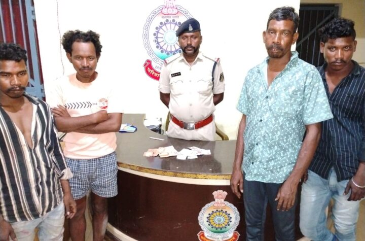04 आरोपियों के कब्जे 2250 रु नगदी रकम व 52 पत्ती ताश किया गया जप्त। आरोपियों का नाम -1) नितेश...